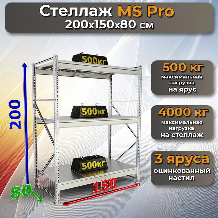 Стеллаж складской MS Pro 200х150х80 3 яруса