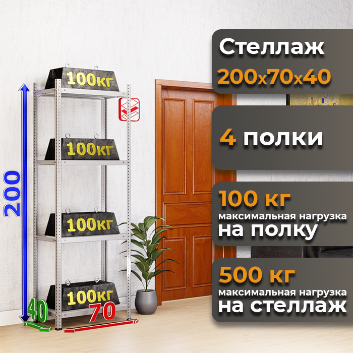 Стеллаж в гараж MS Standart 200х70х40 с четырьмя полками — это стильное, прочное и функциональное решение, которое станет незаменимым помощником в поддержании порядка в гараже и в доме.